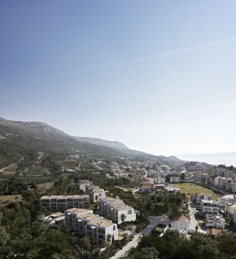 Ekskluzywny ośrodek 6 domów trzyrodzinnych w atrakcyjnej lokalizacji z ogromnym potencjałem rozwoju. W sumie 54 apartamenty, 18 penthouse'ów i 18 studiów z prywatnym tarasem lub balkonem stanowią idealne miejsce na wypoczynek na wybrzeżu Adriatyku. Podstrana w Chorwacji to idealny wybór dla osób poszukujących domu w spokojnej okolicy, a jednocześnie blisko tętniącego życiem miasta. Ośrodek położony jest zaledwie 600 m od morza i 40 minut od międzynarodowego lotniska w Splicie!