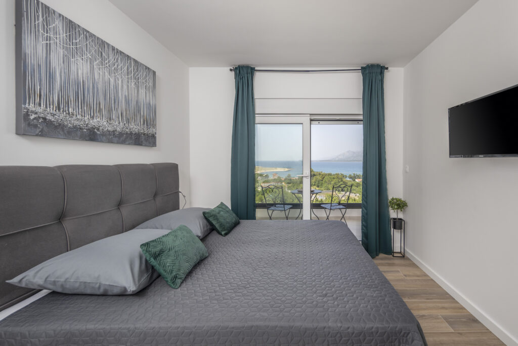 Willa składa się z części dziennej elegancko podzielonej na dwie oddzielne dwupiętrowe jednostki mieszkalne. Willa oferuje komfortowe zakwaterowanie dla maksymalnie 12 osób w 6 nowocześnie urządzonych i klimatyzowanych pokojach. Na parterze każdego lokalu znajduje się nowoczesna iw pełni wyposażona kuchnia, w centrum której znajduje się bar. Zewnętrzna jadalnia na 12 miejsc z pewnością stanie się miejscem, w którym można delektować się posiłkiem na świeżym powietrzu. Przestronny salon prowadzi bezpośrednio na odkryty taras z podgrzewanym basenem. Sypialnia znajduje się na pierwszym piętrze, z jednym wyjątkiem, gdy sypialnia znajduje się na parterze budynku. Z każdej sypialni jest wyjście na balkon lub taras.