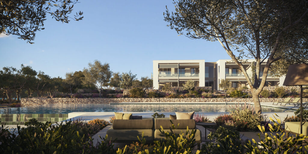 Każdy apartament łączy nowoczesny komfort z naturalnymi materiałami , które odzwierciedlają charakter otoczenia. Dzięki dużym przeszklonym ścianom i dużej ilości światła, wnętrza apartamentów idealnie wtapiają się w zapierającą dech w piersiach przyrodę. Kompleks oferuje restauracje, bary, opiekę nad dziećmi, centrum odnowy biologicznej, spa, siłownię oraz usługi sprzątania . Budowa tego projektu, składającego się z czterech budynków z 88 apartamentami, rozpocznie się jesienią 2024 roku, a jego otwarcie planowane jest na koniec 2025 roku.